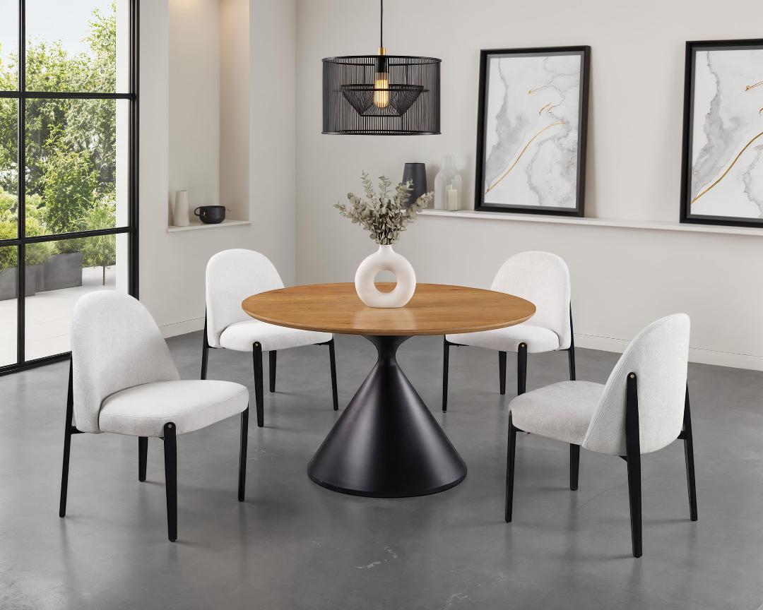 Bring effortless sophistication into your dining space with this striking 5-piece dining set, featuring a sculptural round table and four beautifully upholstered chairs. Designed to impress while remaining highly functional, this set is ideal for both everyday dining and intimate gatherings.