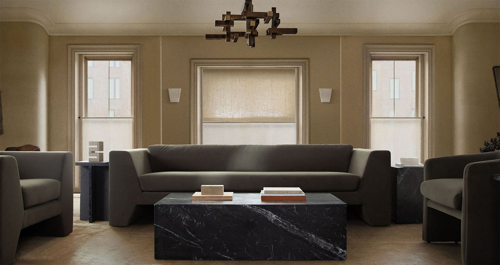- Striking modern design with bold, structured arms