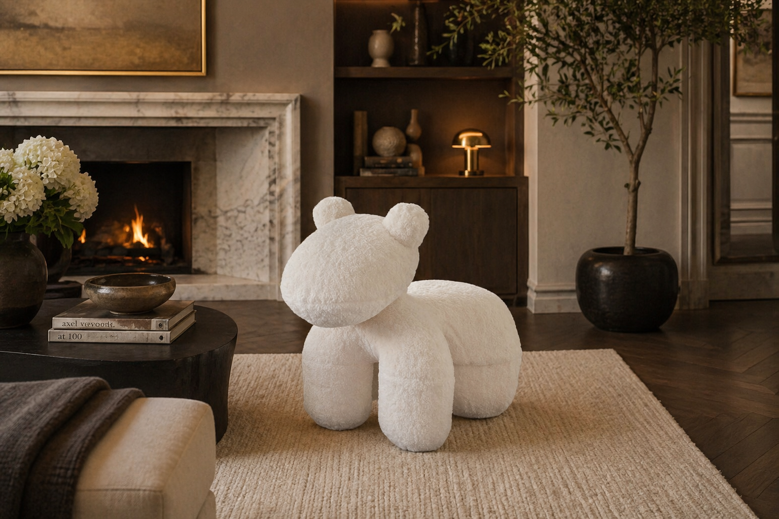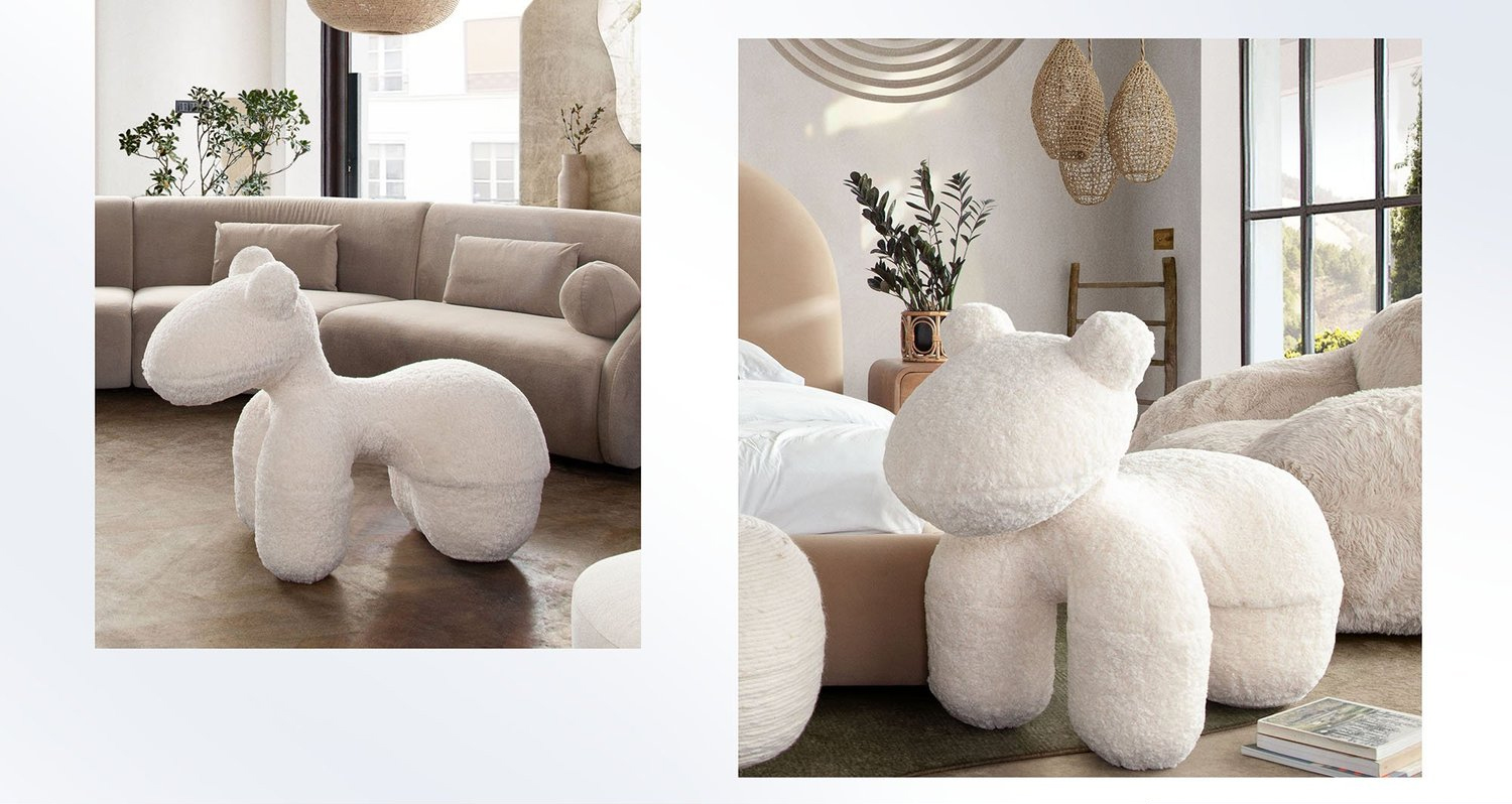 Crafted in a soft, luxurious cream sheepskin finish, the Yeliab features a playful sculptural silhouette that feels both modern and inviting. Its organic curves and plush texture create a cozy yet high-end aesthetic that blends effortlessly into contemporary, minimalist, and upscale interiors.